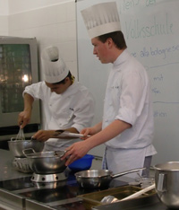 Die Grundschüler folgten dem Unterricht, den die Berufsschüler gestalteten, und zeigten Interesse für die Tricks, die Küchenmeister Hubert Hofer preisgab: Wie ein ganzes Stück Schokolade ins Törtchen gelangt, glich schon fast einem Zauberstück. Anschließend gab es Schoko-Mousse und viele andere Leckereien zu verkosten. Für die Großen galt es, Reimrätsel zu lösen.