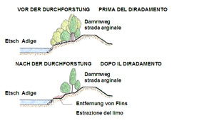 „Um bei Hochwassern ausreichend Platz für den Abfluss des Wassers zu sichern, werden alte und zu große Bäume abgeholzt“, erklärt der Direktor der Landesabteilung Wasserschutzbauten Rudolf Pollinger. Sämtliche Arbeiten laufen laut Pollinger nach einem auf mehrere Jahre angelegten Plan ab. „Zu den Pflegearbeiten gehört auch das Mähen des Schilfröhricht und die Durchforstung der Ufergehölze“, erläutert der Direktor des Landesamts für Wildbach- und Lawinenverbauung Süd Peter Egger. Bei den Arbeiten stehe der Hochwasserschutz im Mittelpunkt, wobei jedoch die ökologischen Erfordernisse naturnaher Lebensräume nicht außer Acht gelassen würden, so Egger.