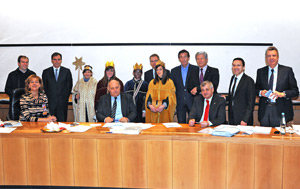 LPA - Besuch von angenehmen Gästen bekamen Landeshauptmann Luis Durnwalder und die Landesräte heute, 30. Jänner, bei der letzten Landesregierungssitzung in diesem Jahr im Palais Widmann in Bozen. Die Erben der drei Weisen aus dem Morgenland, die Sternsinger, waren auf ihrem Weg durch die Stadt eingekehrt, um nach Spenden zu fragen. Durnwalder und die Landesräte spendeten für die über hundert Projekte, die über die Dreikönigsaktion mitfinanziert werden.