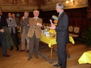 Chefkämmerer Piercarlo Turra mit Lob verabschiedetInsbesondere der Generaldirektor des Landes, Adolf Auckenthaler, fand lobende Worte für die Arbeit und die Leistungen von Abteilungsleiter Turra. Als oberster Verwalter und Wächter der Einnahmen und Ausgaben des Landes sei Dr. Turra ein gewissenhafter Chefkämmerer gewesen. Bei seinem Eintritt in den Landesdienst zu Beginn der 70er Jahre sei der damalige Landesherr (sprich Landeshauptmann) noch einem "Friedrich mit der leeren Tasche" vergleichbar gewesen, nach 30 Jahren sei dann - auch dank der umsichtigen Tätigkeit des "Camerlengo Dr. Turra" - der Landeshauptmann ein reicher Landesfürst geworden, wie vor mehr als 500 Jahren Erzherzog Sigmund der Münzreiche. Im Jahre 1970 habe der Landeshaushalt ca. 20 Milliarden Lire betragen, 1981 bereits 790 Milliarden Lire und im Jahre 2003 betrugen die Einnahmen und Ausgaben des Landes Südtirol stolze 9800 Milliarden (Lire), was - so rechnet Generaldirektor Auckenthaler vor - einer Steigerung von nicht weniger als 48.372 Prozent gleichkomme. Wenn das Land Südtirol heute für seine gesicherten Einnahmen und für seine gute Verwaltung von anderen Regionen beneidet werde, so sei dies auch das Verdienst guter Verwalter vom Format des im Alter von 60 Jahren in den Ruhestand getretenen Abteilungsdirektors, betonte auch Ex-Landesrat Michele Di Puppo, der durch zehn Jahre hindurch die politische Verantwortung des Finanzassessorates getragen hatte.