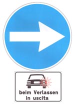 Die zusätzlichen Hinweistafeln, machen, den Fahrzeuglenker darauf aufmerksam, dass er bei der Ausfahrt aus dem Kreisverkehr blinken muss. Solche Hinweistafeln haben sich bereits bei den österreichischen Kreisverkehren bewährt.