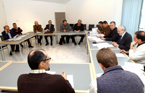 Die Verantwortlichen des Landesstraßendiensts im Gespräch mit den Vertretern der Bezirksgemeinschaften (FOTO:LPA/Pertl)Einheitliche Schilder für die übergemeindlichen Radwege sind vor allem deshalb besonders wichtig, da viele Wege verschiedenartig genutzt werden. Das bedeutet, dass die Radwege teils auch auf Gemeinde- oder Landesstraßen verlaufen und trotzdem einheitlich gekennzeichnet werden müssen. Damit das klappt, soll der Straßendienst des Landes die Koordinierung übernehmen. Das sieht ein entsprechender Beschluss der Landesregierung von Anfang März dieses Jahres vor und das wünschten sich auch die Vertreter der Bezirksgemeinschaften beim heutigen Treffen in Bozen. Einige Bezirksgemeinschaften haben bereits große Teile des Radwegs gebaut und in Absprache mit dem Straßendienst beschildert. Bis zum 30. April 2004 sollen nun alle Bezirksgemeinschaften eine Gesamtübersicht über das übergemeindlichen Radwegenetz ihrer Zuständigkeit beim Straßendienst abgeben. Daraus sollen die bereits gebauten und beschilderten Wege sowie die geplanten Wege bzw. in Bau befindlichen Wege hervorgehen. Außerdem sollen die Bezirksgemeinschaften angeben, welche Abschnitte bei der Beschilderung Priorität haben. Zu nennen ist auch eine Bezugperson für weitere Gespräche. Der Straßendienst ist für die so genannten Sicherheitsschilder und die üblichen Straßenhinweisschilder zuständig und kann auch deren Beschaffung übernehmen, was kostengünstig wäre. Bezahlt werden die Schilder jedoch mit den Geldern aus den Kassen der Bezirksgemeinschaften bzw. der Gemeinden. Um zusätzliche Schilder z.B. mit touristischen Hinweisen müssten sich die Bezirksgemeinschaften selbst kümmern, erklärten Ressortdirektor Josef March und Paolo Montagner, Direktor der Landesabteilung Straßendienst.