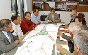 LPA - Ein Kreisverkehr soll den Verkehrsfluss an der Kreuzung zwischen der Staatsstraße nach Meran und der Landesstraße nach Überetsch in Bozen-Moritzing regeln und in Stoßzeiten den Bussen die Vorfahrt lassen. Über das entsprechende Projekt, welches Land und Stadtgemeinde Bozen gemeinsam verwirklichen wollen, haben Bautenlandesrat Florian Mussner und Vizebürgermeister Elmar Pichler-Rolle heute in Bozen beraten.