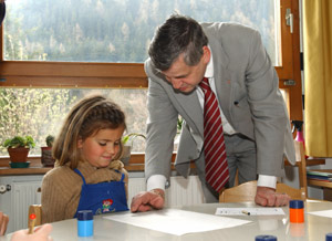 Von den Kindergärten im Grödental hat sich der Landesrat ebenfalls ein Bild gemacht. Die 70 Kinder sind in den drei Sektionen im Kindergarten in St. Christina in hellen und freundlichen Räumen gut untergebracht, befand er. Im Kindergarten „Sureghes“ in St. Ulrich, den 50 Kinder besuchen, schaute sich der Landesrat die neue Gartengestaltung an. Auch dort nahm sich der Landesrat Zeit, mit den Erziehern aber auch mit den Kindern selbst zu sprechen. Im Kindergarten „Salieta“ in St. Ulrich, der gleichzeitig auch der Versuchskindergarten der bildungswissenschaftlichen Fakultät der Freien Universität Bozen ist, stand die Integration von Kindern mit Behinderung im Zentrum des Interesses. Landesrat Mussner ließ sich von den speziell geschulten Erzieherinnen ausführlich verschiedene Methoden der Integration sowie besondere Lernspiele erklären. Der Kindergarten umfasst fünf Sektionen, wobei eine Sektion für die Integrationsgruppe reserviert ist. Insgesamt besuchen derzeit 115 Kinder den „Salieta“-Kindergarten.