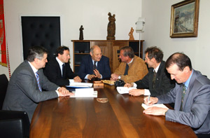 Präsident Pellegrini und seine Begleiter Egon Vinatzer und Tone Pollan erklärten Landeshauptmann Durnwalder beim heutigen Treffen die überregionale kulturelle Vereinigung, die sie vertreten. Dabei verwiesen sie auf die besondere Bedeutung der Zusammenarbeit über die Provinz- und Regionalgrenzen hinaus.