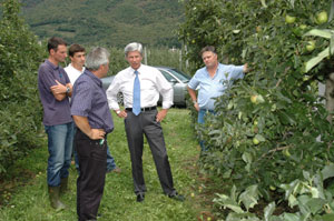 Die Hagelschäden in Gargazon begutachtete LR Berger bei einem Ortsaugenschein.