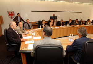 LPA - Zu einer ersten Aussprache nach der Neubestellung der Südtiroler Landesregierung sind am heutigen Mittwochnachmittag die Landesregierung und die Bozner Stadtregierung zusammengetroffen. Dabei wurde eine breite Palette von entstehenden Entscheidungen durchbesprochen und zum Teil auch Lösungen aufgezeigt. Die Gespräche sollen - so wurde nach dem von beiden Seiten, Landeshauptmann Luis Durnwalder und Bürgermeister Giovanni Salghetti-Drioli, als ergiebig und fruchtbar bezeichneten heutigen Treffen, vereinbart - im Oktober fortgesetzt werden.