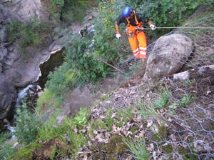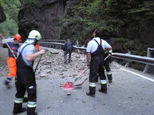 LPA - Sicherungsarbeiten gleich hinter dem ersten Tunnel der Eggentalerstraße (SS 241) machen heute und am morgigen Dienstag, 24. August 2004, von 8 bis 17 Uhr zeitweilige Sperrungen der Straße notwendig. Ein Felssturz hatte am gestrigen Sonntag die Straße für drei Stunden unpassierbar gemacht. Der Landesstraßendienst sichert nun den betroffenen Straßenabschnitt.