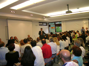 (LPA) Im Krankenhaus Bozen hat gestern Landesrat Richard Theiner in einem Treffen mit den Bediensteten die Ziele und Ausrichtung der Modernisierungsmaßnahmen vorgestellt. Generaldirektor Paolo Lanzinger und Sanitätsdirektor Oswald Mayr erläuterten dabei die konkreten Vorschläge für die Departements im Sanitätsbetrieb Bozen. Im Vordergrund stand auch beim Treffen in Bozen der Dialog mit den Mitarbeitern des Sanitätsbetriebes.