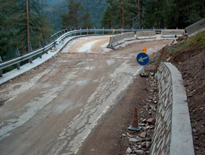 Außer an der zweiten Kehre gab es in der Bauphase kaum Probleme im schwierigen Gelände durch das die Straße verläuft. An der zweiten Kehre kam es wegen schlechten Wetters zu Rutschungen. Eine höhere Mauer wurde gebaut und die Rutschungen so gestoppt. Natürlich seien viele Felssicherungsarbeiten und somit Straßensperren notwendig gewesen, so der Landesrat.