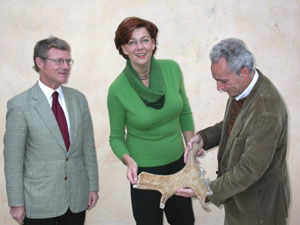 Landeskonservator Helmuth Stampfer und Chefarchäologe Lorenzo Dal Ri informierten heute Landesrätin Kasslatter Mur über die Datierung des Elchgeweihs