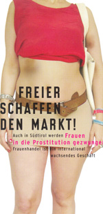 LPA - Frauenhandel ist die moderne Form der Sklaverei. Mit einer Kampagne will der Landesbeirat für Chancengleichheit auch in Südtirol auf das durch die Prostitution wachsende internationale Geschäft mit dem Frauenhandel aufmerksam machen. Beiratspräsidentin Julia Unterberger und ihre Stellvertreterin Alessandra Spada stellen die Kampagne am Donnerstag, 25. November 2004, am Welttag gegen Gewalt an Frauen, im Palais Widmann in Bozen vor.