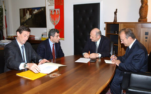 Brennerbasistunnel: LH Durnwalder und LR Widmann mit Moretti und Vertretern der Provinzen Trient und Verona (FOTO:LPA/Pertl)