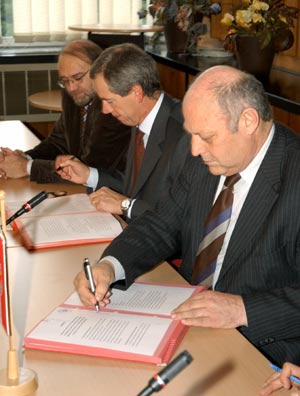 (LPA) Daten zur Wettervorhersage, über zu erwartende Niederschläge und besondere Wetterentwicklungen werden in Zukunft zwischen Staat und Land schneller und gezielter ausgetauscht. Der Datenaustausch ist Gegenstand einer Vereinbarung, die heute (1. Dezember) von Landeshauptmann Luis Durnwalder und dem Chef des staatlichen Zivilschutzes, Guido Bertolaso, in Trient unterzeichnet worden ist. Durnwalder konnte bei dieser Gelegenheit auch einen Scheck über zwei Millionen Euro entgegen nehmen, der für die Sicherung des Murhanges am Heiligkreuzkofel bestimmt ist.