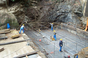 Schwierigkeiten bereitet haben den Arbeitern des Landesamtes vor allem die heiklen Baubedingungen: So musste zunächst die Zufahrtsstraße zu Baustelle und Wasserfassung instand gesetzt, ausgebaut, eingeschottert und asphaltiert werden. Dazu kam die Steinschlaggefahr an der Baustelle, die vor Beginn der Arbeiten im Bachbett eine Säuberung der Hänge oberhalb der Baugrube sowie die Montage von Steinschlagnetzen notwendig gemacht hatte.