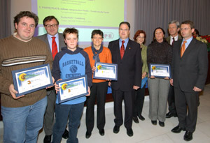LPA - 87 Unternehmen und einzelne Bürger aus Südtirol und dem Trentino haben sich um den Umweltpreis 2004 beworben. Die drei besten Umweltideen der Unternehmen und der Einzelpersonen haben Umweltlandesrat Michl Laimer, Ressortdirektor Walter Huber und Transkom-Chef Arnold Biasion am 21. Dezember 2004 in Bozen mit dem Umweltpreis Trentino-Südtirol 2004 ausgezeichnet. An der Feier nahm auch Landesrat Hans Berger teil.