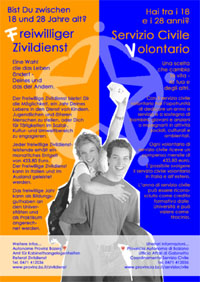 Weitere Informationen über den freiwilligen Zivildienst erteilt das Büro für den Zivildienst, Palais Widmann, Crispistraße 3, in Bozen unter der Rufnummer 0471 412036, unter der E-Mail: mpacher@serviziocivile.it. Infos gibt es auch im Internet unter www.provinz.bz.it/serviziocivile