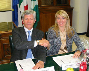 (LPA) Das Pflanzmaterial für Südtirols Obstbau, das zu einem Teil aus der Lombardei stammt, wird in Zukunft in einer vor Pflanzenkrankheiten weitgehend geschützten Zone wachsen. Dafür sorgt die landwirtschaftliche Schutzzone, die von Landesrat Hans Berger und der Vizepräsidentin der Region Lombardei, Viviana Beccalossi, in zehn Gemeinden in der Provinz Brescia eingerichtet wurde. Das entsprechende Einvernehmensprotokoll ist heute unterzeichnet worden.