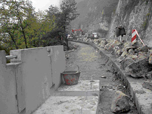LPA - Viele Kurven und steile Böschungen am Straßenrand machen die Staatsstraße auf den Mendelpass gefährlich. Zwei Gefahrenstellen werden nun entschärft. Im Auftrag des Bautenressorts wird zum einen eine Kehre verbreitert, die bisher nur eine Fahrbahnbreite von fünf Metern hatte und für LKWs große Problem verursachte. Zum anderen wird ein längerer Straßenabschnitt mit einer neuen Mauer gesichert. Vom 7. bis zum 23. März 2005 bleibt die Straße deshalb an Werktagen für den Verkehr gesperrt.