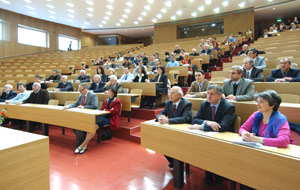 LPA - Für das Herzstück der Freien Universität in Bozen, die sechs neuen Hörsäle, hat Bautenlandesrat Florian Mussner heute (18. März 2005) im Beisein von Hochschullandesrat Otto Saurer und Landesrätin Luisa Gnecchi die Schlüssel an den Universitätspräsidenten Friedrich Schmidl und die Rektorin Rita Franceschini übergeben. Über 1000 Studenten können nun in der Uni gleichzeitig in den Vorlesungen sitzen. Eine Teleteaching-Anlage erlaubt den Fernunterricht in Echtzeit. „Die veranschlagten Bau- und Einrichtungskosten für die Hörsäle von 10,3 Millionen Euro konnten durch umsichtige Planung und Bauleitung auf 8,6 Millionen Euro reduziert werden“, unterstrich Mussner.