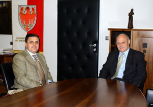 (LPA) Zu einem Antrittsbesuch hat sich heute (5. April) der neue Direktor der Bozner Außenstelle der Agentur für Einnahmen, Enrico Sangermano, bei Landeshauptmann Luis Durnwalder eingefunden. Im Mittelpunkt der Aussprache stand die Zusammenarbeit zwischen Land und Agentur, die nach Auffassung beider Gesprächspartner weiter verbessert werden soll.