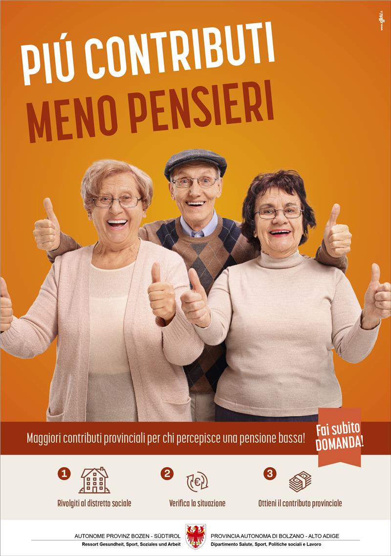 "Abbiamo deciso di allargare la platea di coloro che hanno diritto al sostegno provinciale – spiega l’assessora alle politiche sociali, Martha Stocker - e di adeguare gli importi già introdotti a partire dal 2014. In questo modo, si vuole venire incontro ai pensionati altoatesini che percepiscono una pensione bassa ed hanno obiettive difficoltà economiche. Attraverso una capillare campagna informativa e di sensibilizzazione, che coinvolge anche i sindacati dei pensionati, attraverso i rispettivi Patronati, vogliamo raggiungere ed informare tutti coloro che hanno diritto a queste misure di sostegno sociale”.