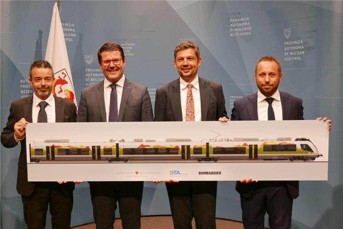 Promuovere una mobilità sicura e pulita, favorire il trasferimento del traffico su rotaia e rafforzare i collegamenti transfrontalieri nell'area dell’Euregio: questi gli obiettivi dell'acquisto di 7 nuovi treni da parte della Provincia di Bolzano che verranno prodotti nella sua sede europea dall’azienda canadese Bombardier. L'acquisto dei treni avverrà tramite la partecipata della Provincia STA - Strutture Trasporto Alto Adige. Nel corso di una conferenza stampa tenutasi oggi (11 settembre) a Bolzano, l'assessore alla mobilità Daniel Alfreider, il presidente di STA Martin Ausserdorfer e il rappresentante italiano della Bombardier, Marco Biffoni, hanno presentato i dettagli dell'acquisto dei 7 Bombardier Talent3