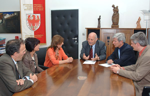 (LPA) Südtirols EU-Zahlstelle, jene Institution also, die künftig für die Auszahlung von EU-Beihilfen in der Land- und Forstwirtschaft verantwortlich sein wird, nimmt Gestalt an. Am gestrigen Abend (11. Juli) haben sich Landeshauptmann Luis Durnwalder und Landesrat Hans Berger mit Vertretern des Landwirtschaftsministeriums getroffen, um die Anerkennung der Zahlstelle in die Wege zu leiten.