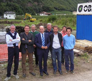 v.l.n.r.: Walter Boller (Firma "Oberosler"), Maurizio Mazzag (Direktor des Landesamts für Straßenbau Mitte-Süd), Alessandro Ghiro (Planungsgruppe), Valentino Pagani (Direktor der Landesabteilung Tiefbau), Anton Maier (Firma "Edil Passiria), Georg Fischnaller (Planer), Gianpaolo Cappeletti (Verantwortlicher der Baustelle), Christian Franchini (Planungsgruppe)