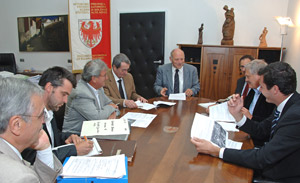 Aufgrund einer Vereinbarung zwischen Land und CONI stellt das Olympische Komitee dem Land bis zum Jahr 2009 jährlich eine Million Euro zur Verfügung. "Das Geld wird in den Bau von Sportanlagen gesteckt, die für alle, besonders aber für die Jugendlichen und deren positive gesundheitliche und soziale Entwicklung bereit stehen sollen", erklärte Landeshauptmann Durnwalder. Eine eigene Kommission bestehend aus Vertretern des Landes und des CONI entscheidet, wie die Gelder verteilt werden. Dieser Kommission gehört auch Landeshauptmann Durnwalderan. Für das italienische Olympische Komitee waren der FISI-Generaldirektor Piero Quargnali und der Südtiroler CONI-Präsident Heinz Gutweniger bei der heutigen Besprechung anwesend. Für das Land waren neben Landeshauptmann Durnwalder auch Alessandro Marzola und Ralph Dejaco mit dabei. „Wir haben entschieden, die Gelder in die Sanierung des Hallenbads der Polizeischule in Bozen, den Bau der Eishalle in Neumarkt und den Bau des Sportgebäudes am Ritten zu investieren“, sagte Durnwalder.
