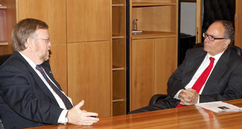 Autonomie, Bildung, Innovation und Forschung waren Schwerpunktthemen beim heutigen Besuch des neuen amerikanischen Generalskonsuls A. Daniel Weygandt bei LH-Stellvertreter Otto Saurer im Palais Widmann in Bozen. "Der neue Generalkonsul der Vereinigten Staaten in Mailand will zunächst alle norditalienischen Provinzen besuchen, wobei er sein Hauptaugenmerk auf die Bereiche Forschung und Innovation sowie die Zusammenarbeit der wissenschaftlichen Einrichtungen mit den Betrieben in diesem Bereich richtet", so LR Saurer nach dem knapp einstündigen Gespräch mit Weygandt.