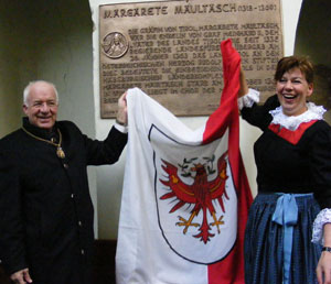 LPA - Eine Gedenktafel zu Ehren der Tiroler Landesfürstin Margarethe wurde am vergangenen Wochenende in der Wiener Minoritenkirche enthüllt. An der feierlichen Enthüllung im Beisein der österreichischen Bundesministerin Claudia Schmied, des Vorsitzenden des Bundesrates, Helmuth Kritzinger, des Tiroler Landeshauptmanns Herwig van Staa, wurde Südtirol durch Landesrätin Sabina Kasslatter Mur vertreten.