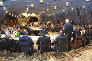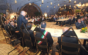 Auf Einladung von Landeshauptmann Luis Durnwalder hat Napolitano seinen Besuch in Südtirol mit einem Empfang im Felsenkeller des Versuchszentrums Laimburg beendet. Gegen 18.45 Uhr traf Napolitano in Begleitung seiner Frau Clio im Felsenkeller ein, wo ihn neben dem Trentiner Landeshauptmann Lorenzo Dellai, Landtagspräsident Riccardo Dello Sbarba und Regionalratspräsident Franz Pahl rund 70 Ehrenamtliche aller drei Sprachgruppen und aller Bereiche - von der Kultur über das Gesundheits- und Sozialwesen bis hin zu Zivilschutz, Sport, Umwelt und Bergrettung - erwartet haben. "Wir haben die Vertreter der Vereine und Verbände hierher gebeten, um ihnen ein symbolisches Dankeschön für ihre tägliche unentgeltliche Arbeit zu sagen", so Durnwalder.