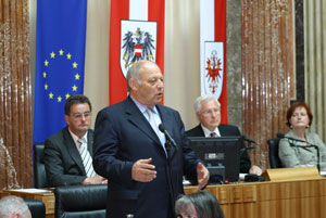 Dank an Österreich: LH Durnwalder vollzog heute im Bundesrat in Wien den Werdegang der Autonomie nach (im Hintergrund in der Bildmitte: Bundesratspräsident Kritzinger) (Foto: Bundesrat/Kress)
