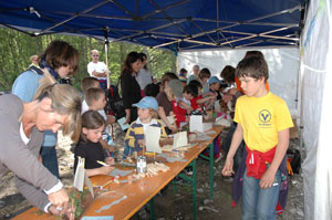 Schüler des Pädagogischen Gymnasiums Bruneck haben im gleichnamigen Theaterstück den "Flusskrebs auf Wanderschaft" begleitet, die Forststation Bruneck bot dagegen Hilfe beim Schnitzen von Maipfeifln. Und nachdem kaum ein Kind die Veranstaltung ohne Maipfeifl verlassen wollte, gab's für die Mitarbeiter am Stand keine Verschnaufpause. Ein ähnliches Bild bot sich am Stand des VKE, an dem Boote gebastelt werden konnten, und an jenem der Freiwilligen Feuerwehr St. Georgen, die ein Wettspritzen geboten hat.