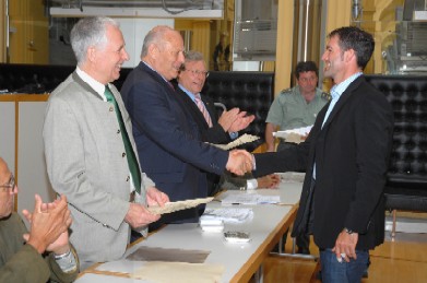 Durnwalder, selbst seit Jahren begeisterter Jäger, konnte heute auch einem prominenten neuen Jäger seinen Nachweis überreichen: Armin Zöggeler wird in Zukunft über das Wild in Südtirols Wäldern wachen.