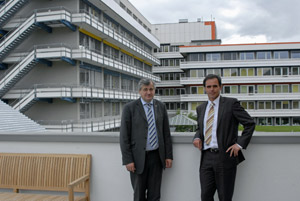 LPA - Wegen Platzmangel und um die Technik auf den neuesten Stand zu bringen wird das Krankenhaus Bruneck umgebaut und erweitert. Die Arbeiten dafür gehen zügig voran. Davon konnten sich heute, 4. Juni, Bautenlandesrat Florian Mussner und Gesundheitslandesrat Richard Theiner vor Ort überzeugen. Bereits fertig gebaut sind der neue Sitz für die Rettungsdienste, der Wirtschaftshof und die Kinderrehabilitation.
