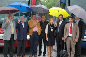 Wettermäßig ist der Start des Seebusses nicht gerade ideal verlaufen, LR Widmann und die Vertreter der beiden Gemeinden Eppan und Kaltern hat's nicht weiter beeindruckt.