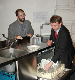 Mit Spülmaschinen gegen Festmüllberge: LR Laimer und Amtsdirektor Angelucci