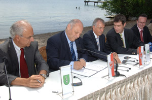 LPA - Eine Reihe gemeinsamer Maßnahmen zum Schutz der Alpenländer und der 23 Millionen Menschen, die dort leben, haben die Regierungschefs der zehn Arge-Alp-Länder heute (Freitag, 20. Juni) am Chiemsee in Bayern vereinbart. Die 39. Konferenz der Regierungschefs unter dem Motto "Arge Alp - Starkes Rückgrat für Europa" wurde mit der Unterzeichnung eines Schlussdokuments abgeschlossen, in dem „dem alpenquerenden Verkehr, der umweltfreundlichen Energie und dem Schutz der Berge“ nach den Worten von LH Durnwalder besondere Bedeutung beigemessen wird.