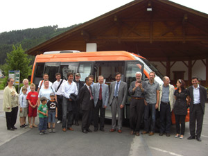 Gemeinsam mit den Bürgermeistern der Gemeinden Sillian und Innichen, Erwin Schiffmann und Josef Passler hat Mobilitätslandesrat Widmann die neue grenzüberschreitende Buslinie vorgestellt und sie gleich selbst ausprobiert. Vor Ort waren auch zahlreiche Vertreter der Pustertaler Gemeinden sowie der Tourismusverbände Sillian und Hochpustertal.