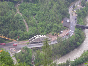 Die Landesabteilung Tiefbau hat nun die Arbeiten an der neuen Brücke in Steg abgeschlossen. Sie musste errichtet werden, nachdem eine statische Kontrolle der bestehenden Brücke ergeben hatte, dass diese im Laufe der Jahre verwittert und beschädigt worden war und daher nicht mehr die notwendige Tragfähigkeit aufwies. Dazu kam, dass Ein- und Ausfahrt der Brücke alles andere als günstig angelegt worden waren. Sie bildeten jeweils eine enge Kurve, zudem war die Fahrbahn auf der Brücke schmaler als für die Brennerstaatsstraße vorgesehen.