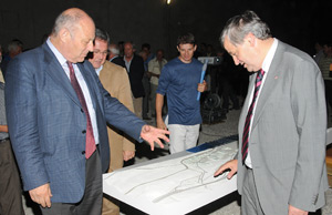 LPA - Nach einigen Verzögerungen wegen archäologischen Funden gehen die Arbeiten für die fast drei Kilometer lange Brixner Umfahrung nun wieder zügig voran. Davon konnten sich Landeshauptmann Luis Durnwalder und Bautenlandesrat Florian Mussner heute, 15. Juli vor Ort überzeugen. Der Nordtunnel ist fast fertig gebaut. Vom Südtunnel sind rund 200 Meter aufgefahren. Noch im Oktober sollen die Arbeiten für den Nordanschluss starten.
