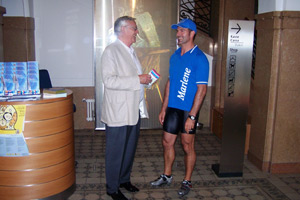 Mit seinem Mountainbike kam Armin Zöggeler zum Südtiroler Archäologiemuseum wo er vom Präsidenten der Südtiroler Landesmuseen Bruno Hosp begrüßt wurde. Nach dem Erhalt des Rallyepasses, machte er sich sogleich auf die Suche nach den drei Lösungen die im Museum versteckt sind. Natürlich nicht ohne vorher einen kurzen Blick auf die berühmte Gletschermumie zu werfen. Anschließend fuhr er mit seinem Mountainbike gleich weiter in Richtung Naturmuseum. Auch dort suchte er zwischen Aquarien, Gesteinen und Murmeltieren nach den richtigen Antworten auf die Fragen im Rallyepass.