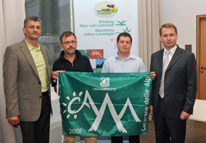 LPA – Die "Grüne Flagge" des italienischen Umweltschutzbundes Legambiente ist heute (8. August) dem Projekt "Almerlebnis Naturparks" verliehen worden. Entgegengenommen haben die Auszeichnung Umweltlandesrat Michl Laimer und der Direktor des Landesamts für Naturparke, Artur Kammerer.