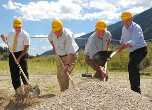 LPA - Den ersten Spatenstich für die Umfahrung von Vintl haben Landeshauptmann Luis Durnwalder und Bautenlandesrat Florian Mussner heute (Montag, 11. August) um 11 Uhr gesetzt. Sie bezeichneten die Umfahrung als weiteren wichtigen Schritt zum Ausbau der Pustertaler Straße mit dem vorrangigen Ziel Verkehrssicherheit und Lebensqualität zu verbessern.