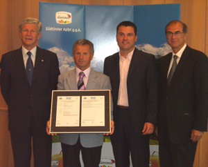 LPA - Das Konsortium Südtiroler Qualitätskontrolle wurde von der Europäischen Union als erste unabhängige Kontrollstelle Südtirols anerkannt. Die Landesräte Werner Frick und Hans Berger freuten sich heute,19. August, in Terlan gemeinsam mit Präsident Karl Weiss und Leiter Dietmar Sinner über das kürzlich eingetroffene Zertifikat.