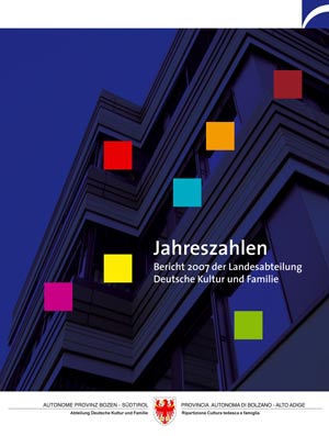 Genaueres über die Arbeit der Abteilung Kultur und Familie ist in der Broschüre "Jahreszahlen" nachzulesen, die bei der Landesabteilung für Kultur und Familie, Andreas-Hofer-Straße 18, in Bozen abgeholt sowie unter der Rufnummer 0471 413311/12 sowie unter der Mailadresse kulturabteilung@provinz.bz.it angefordert werden.