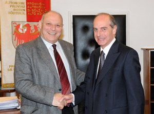 Rodighiero gegenüber betonte der Landeshauptmann, dass das Land vor allem darauf bedacht sei, die Auszahlung von Beiträgen an die heimischen Unternehmen zu beschleunigen und auch das Begleichen offener Rechnungen. Zudem werde das System der Garantiegenossenschaften gestärkt, die Bürgschaften für Kredite kleiner und mittlerer Unternehmen übernehmen können. "So sichern wir unserer klein strukturierten Wirtschaft weiterhin einen Zugang zum Kreditmarkt", so Durnwalder, der heute den Banca-d'Italia-Direktor auch über das Investitionsprogramm des Landes informiert hat.