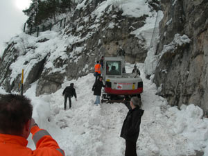Aufräumungsarbeiten sind im Bereich des neuerlichen Lawinenabganges geplant. Von der Straße aus können die Arbeiter mit dem Kran auch mit dem Bohren für die Anker des Steinschlagschutznetzes in den seitlichen Flanken des Taleinschnittes beginnen. In einem nächsten Schritt sollen dann die Bohrungen für einen neuen Steinschlagschutzzaun bei der achten Kehre starten.